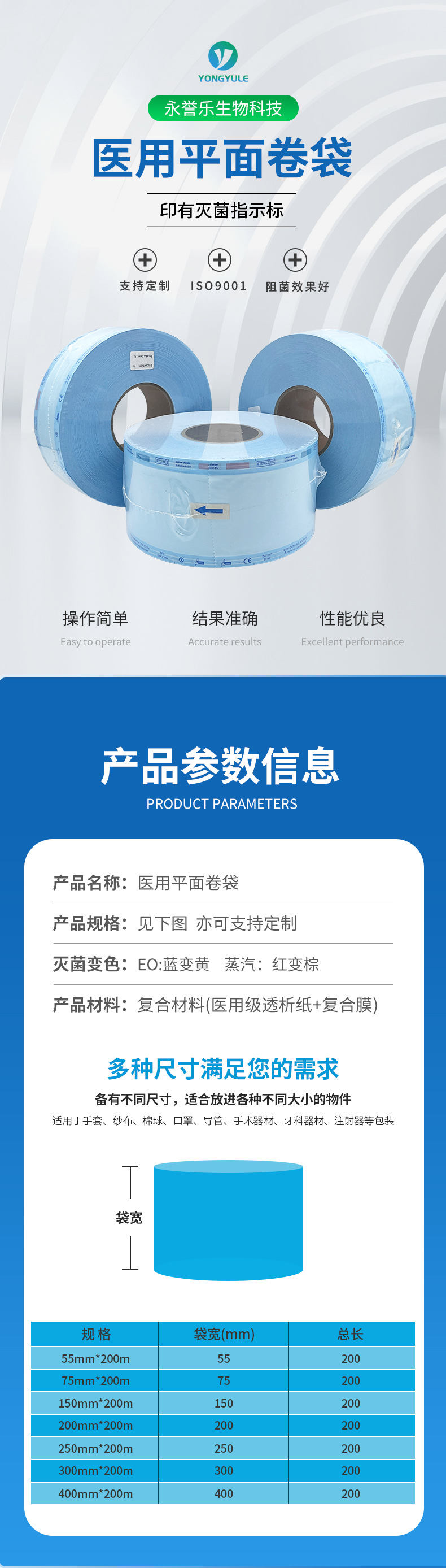 Dental sterilization roll bag medical equipment roll bag sterilization bag high temperature sterilization instructions flat roll bag manufacturers spot direct sales