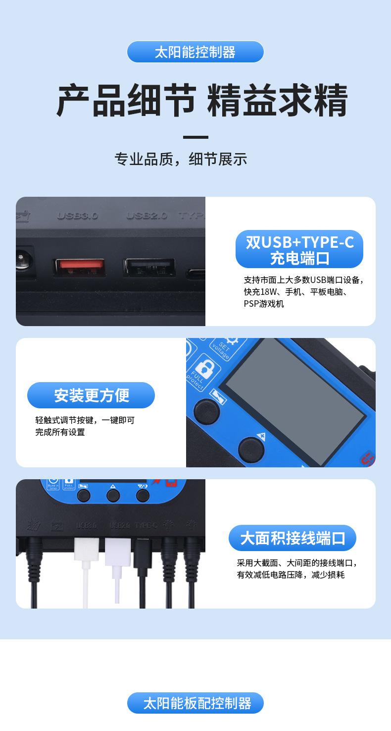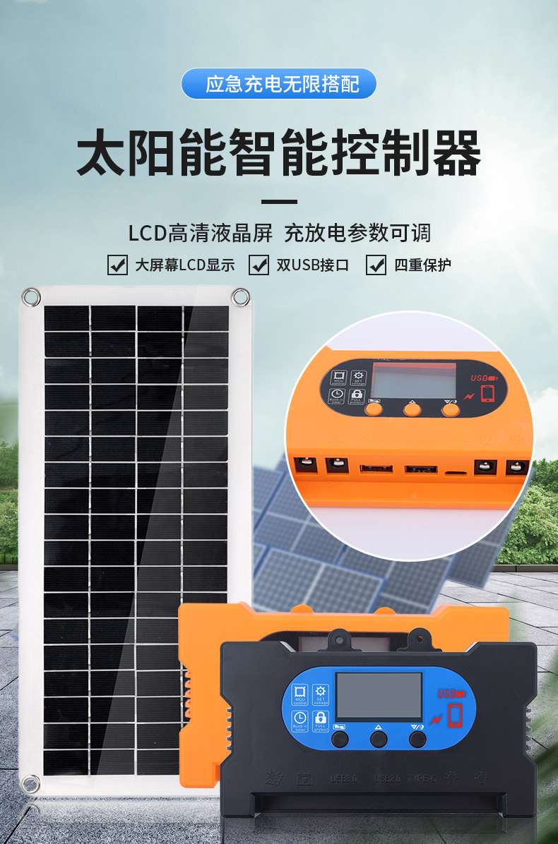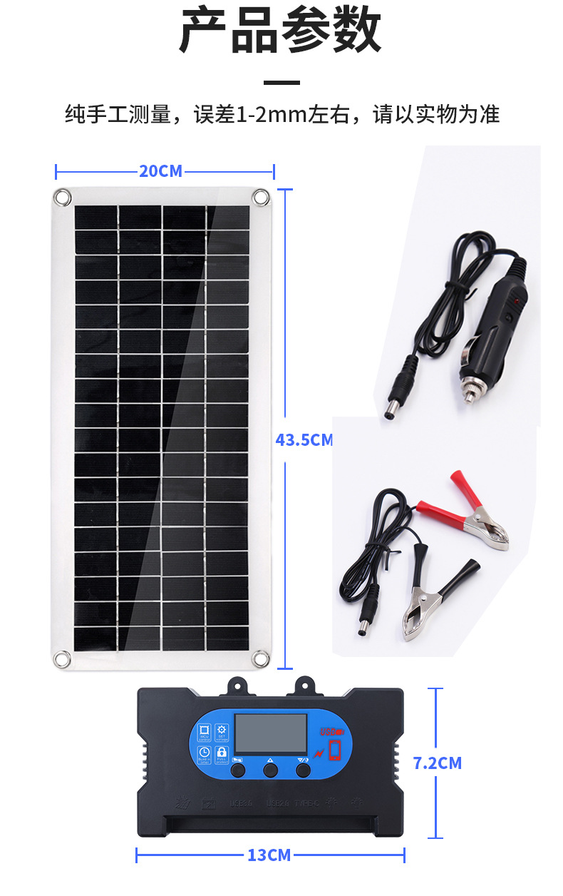 Cross-border exclusive 20W18V fast charging controller for solar panels, emergency solar photovoltaic panels are highly efficient and easy to install