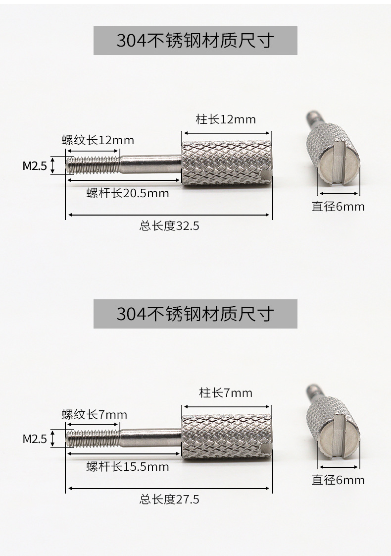 | Product specification | Stainless steel Φ6*M2.5*32.5* rod length 20.5 |