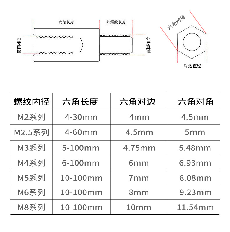 304 stainless steel single-ended hexagonal stud terminal post, male and female isolation post, single-way stud support post for chassis motherboard