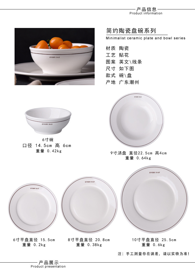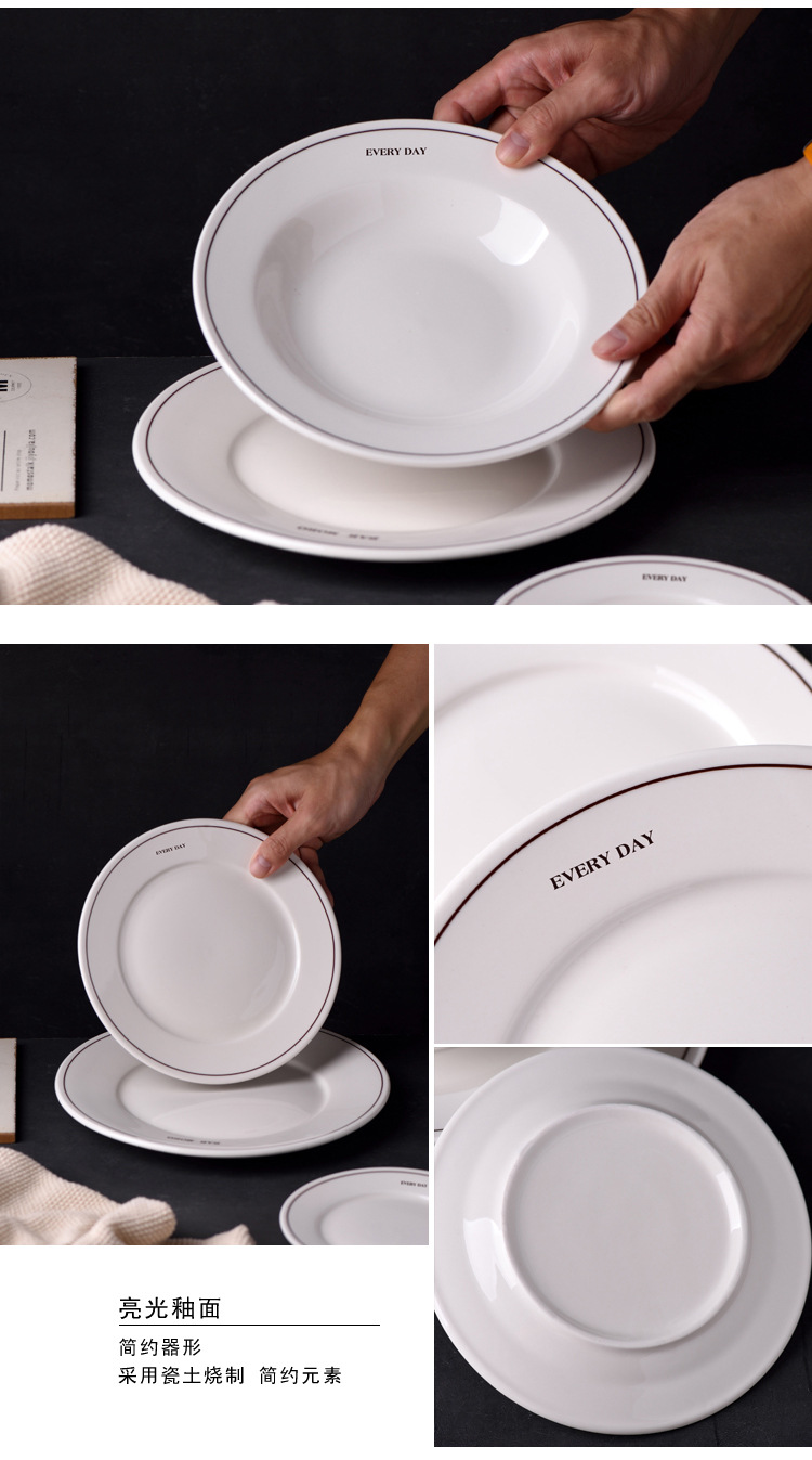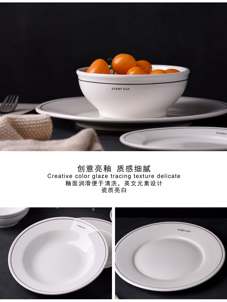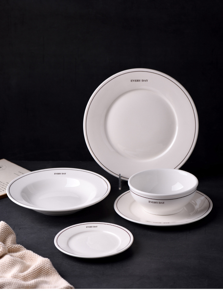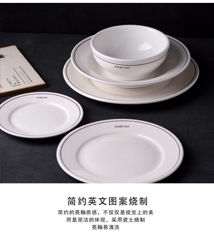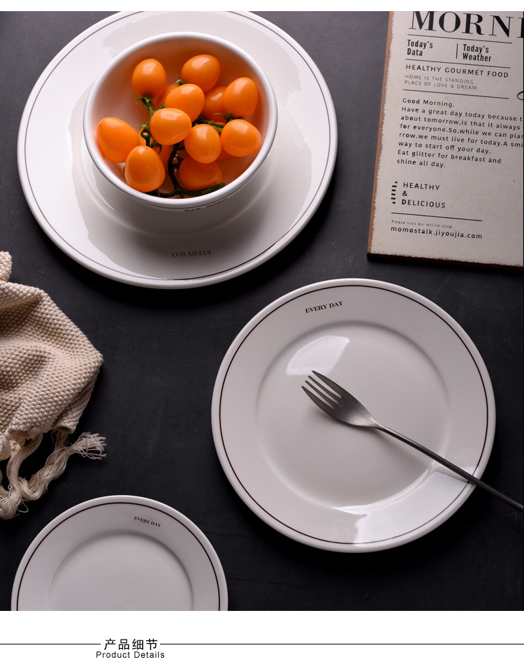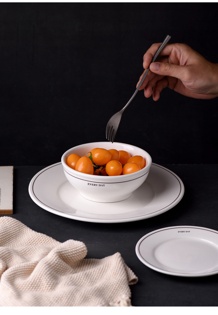 Simple Ins-style ceramic plates with letter lines, French household breakfast round plates, cereal bowls, and retro-colored tableware