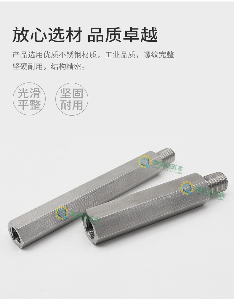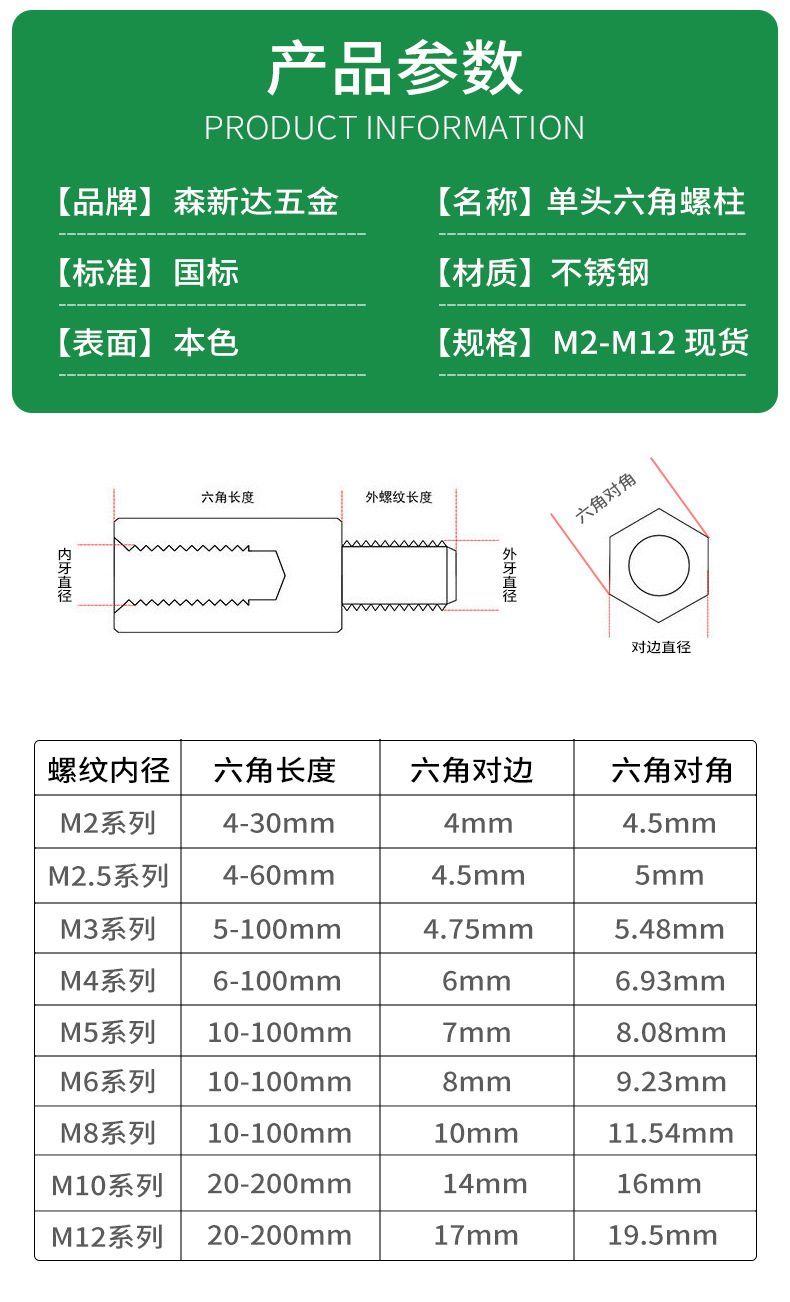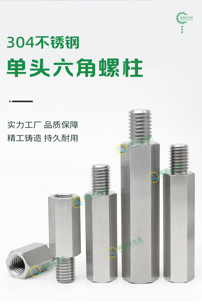 304 stainless steel single-head hexagonal stud, male and female isolation stud, internal and external thread connection stud, single-way stud, M2, M12