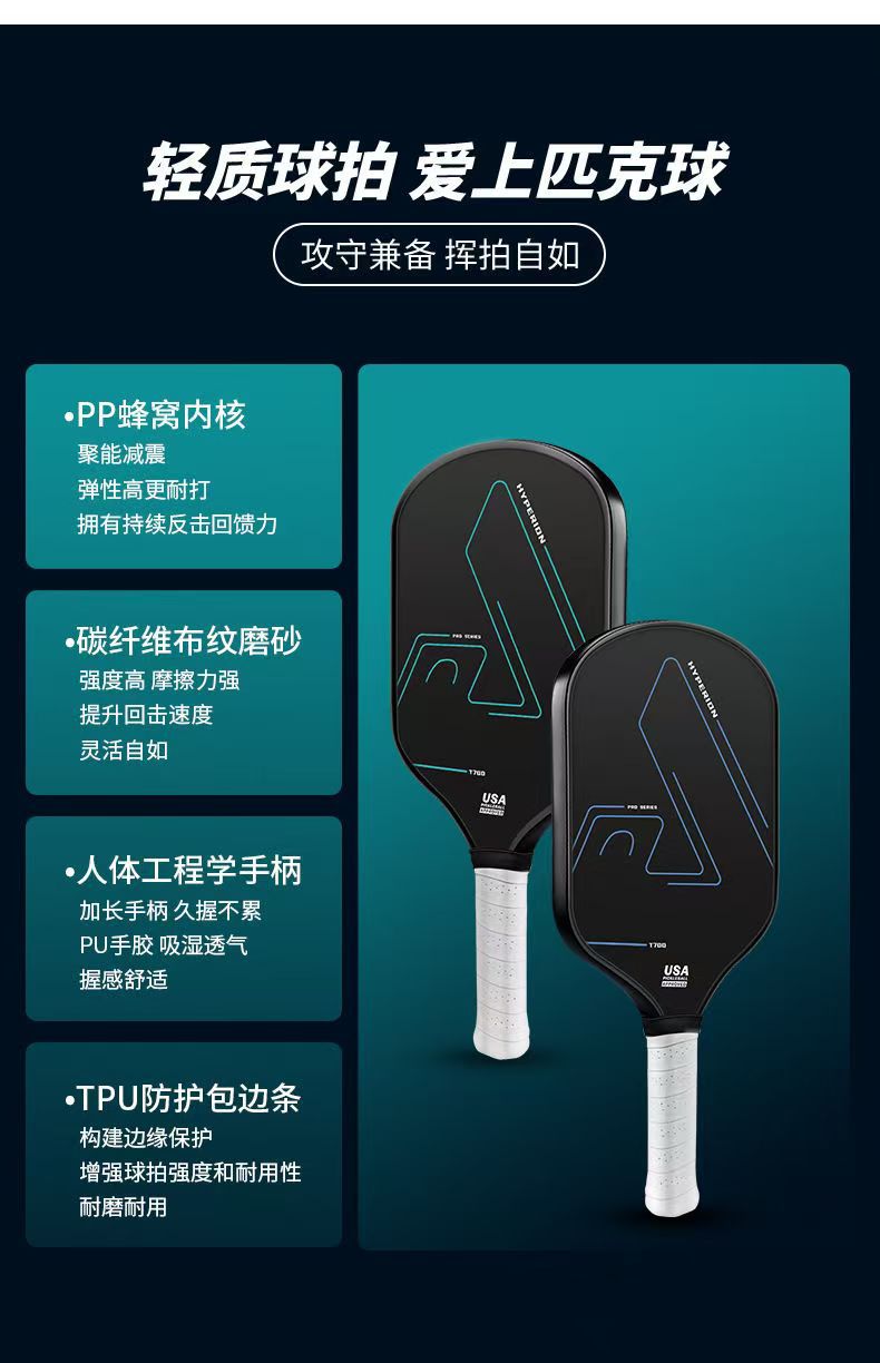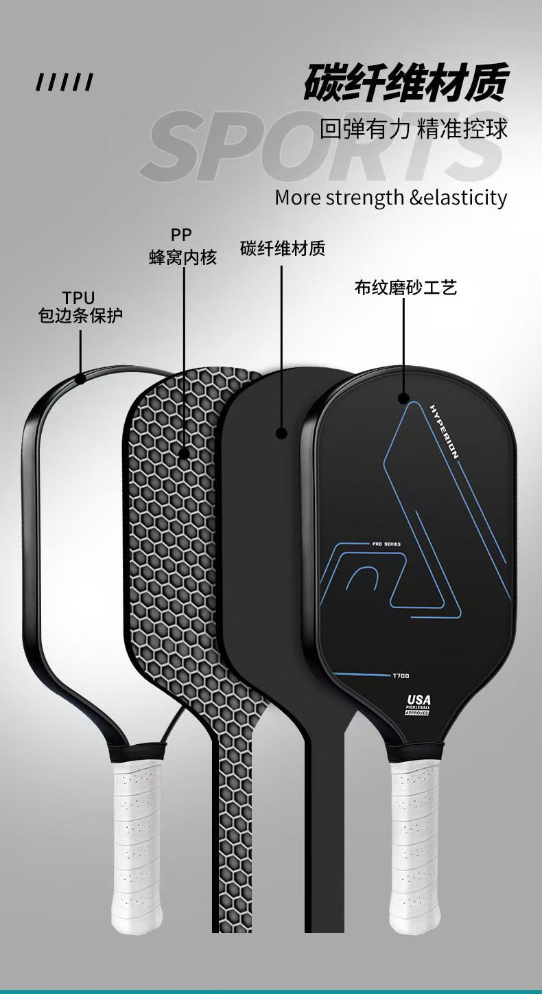 pickleballpaddle factory direct sales carbon fiber fabric textured matte pick racket 16mm, lightweight
