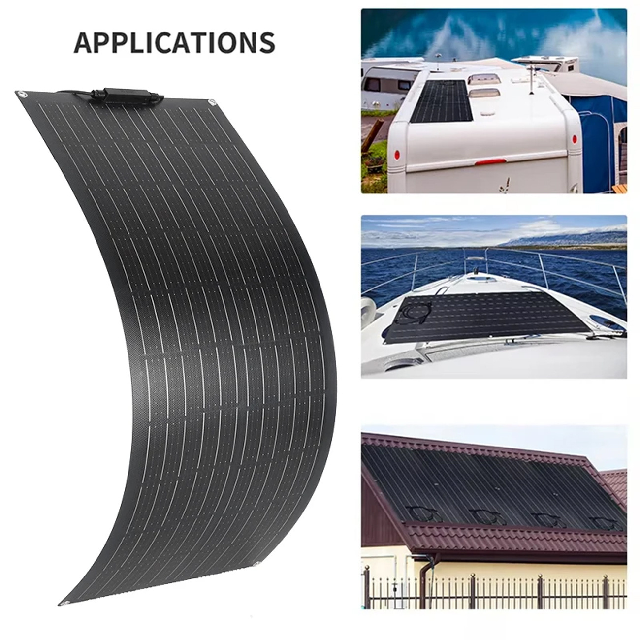 Cross-border exclusive supply of 80W and 160W single-crystal double-sheet 18V black photovoltaic semi-flexible panels for recreational vehicles and ships