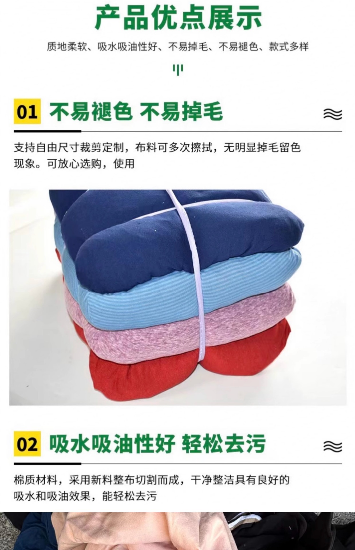 Multicolored machine cleaning cloth, oil-absorbing and non-shedding industrial polyester-cotton cleaning cloth, auto repair machine cleaning cloth, cleaning cloth strips, heavy oil stains
