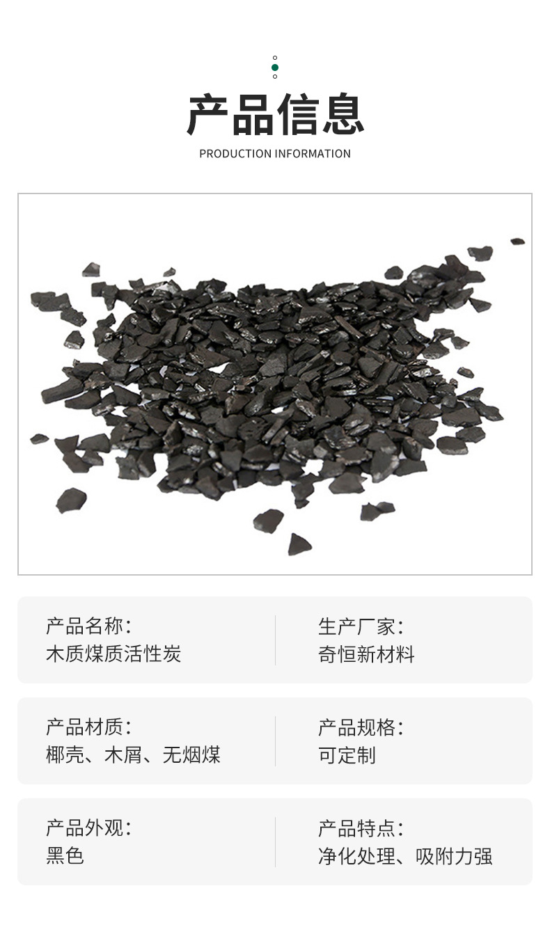 | Specification | Wood based coal based activated carbon |