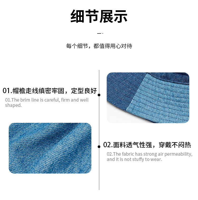 | Color | Denim blue color-blocked fisherman's hat |