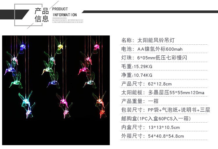 Specification | Painted hummingbird wind chime chandelier |