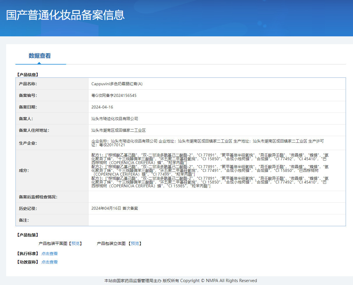 | Non-special cosmetics filing certificate number | The registration number of Yue G Makeup Network is 2024156545 |