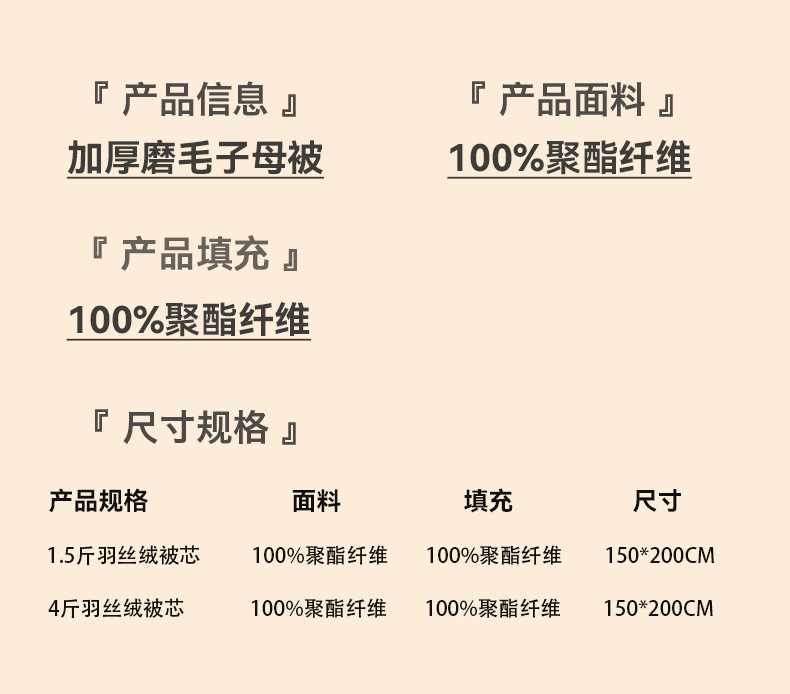| Weight of the quilt | 4 jin (exclusive) -5 jin (inclusive) |