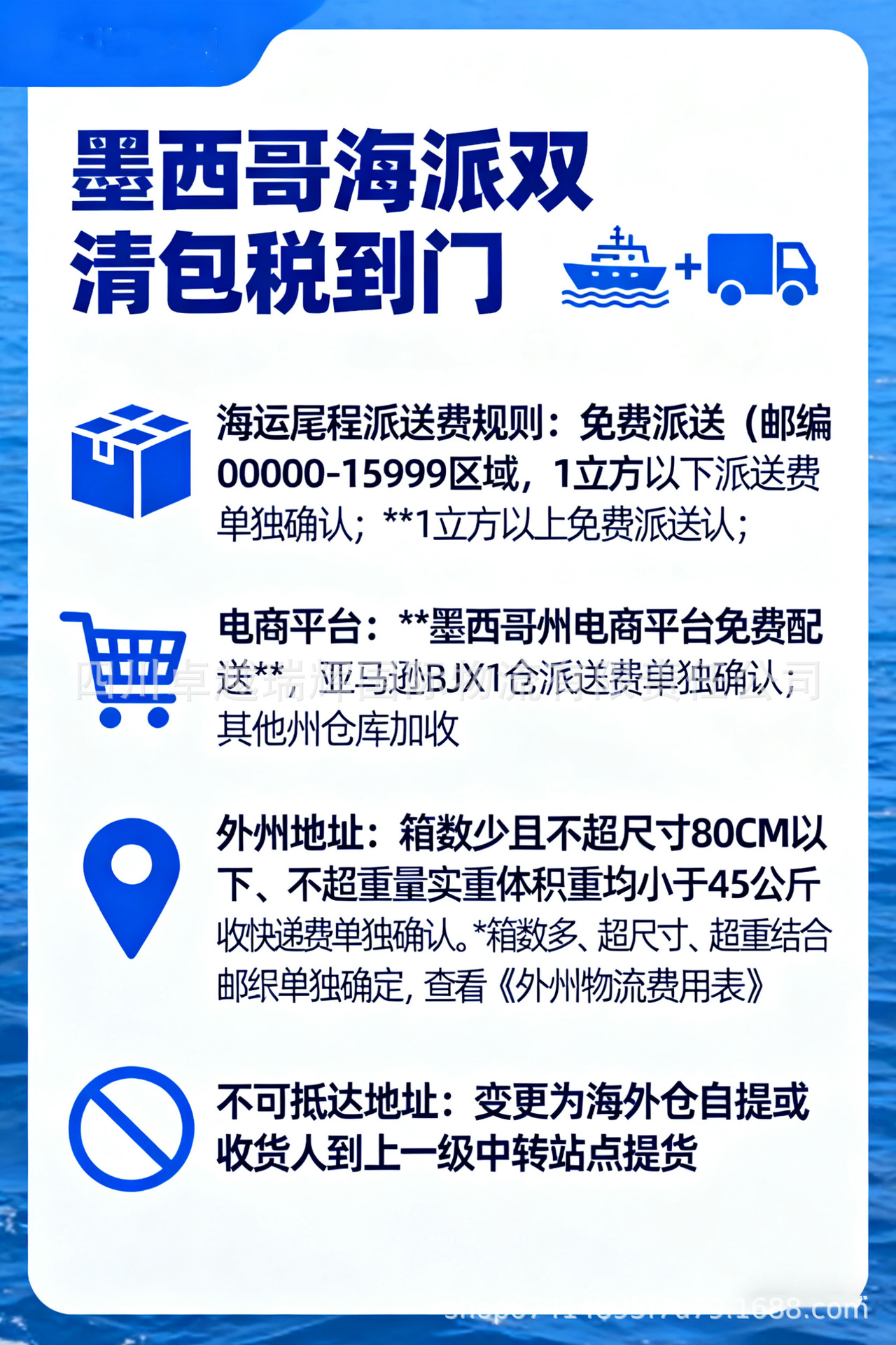 Brand | Direct sea express service from Mexico with double clearance and tax-inclusive door-to-door service |