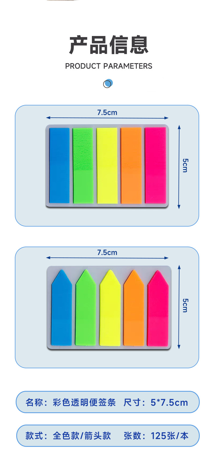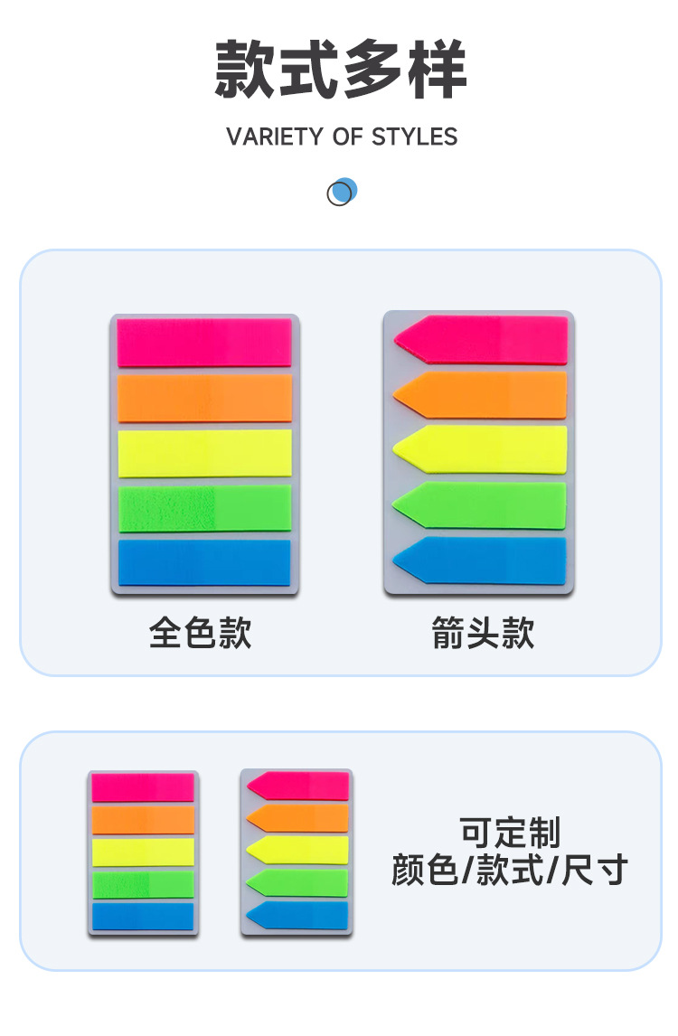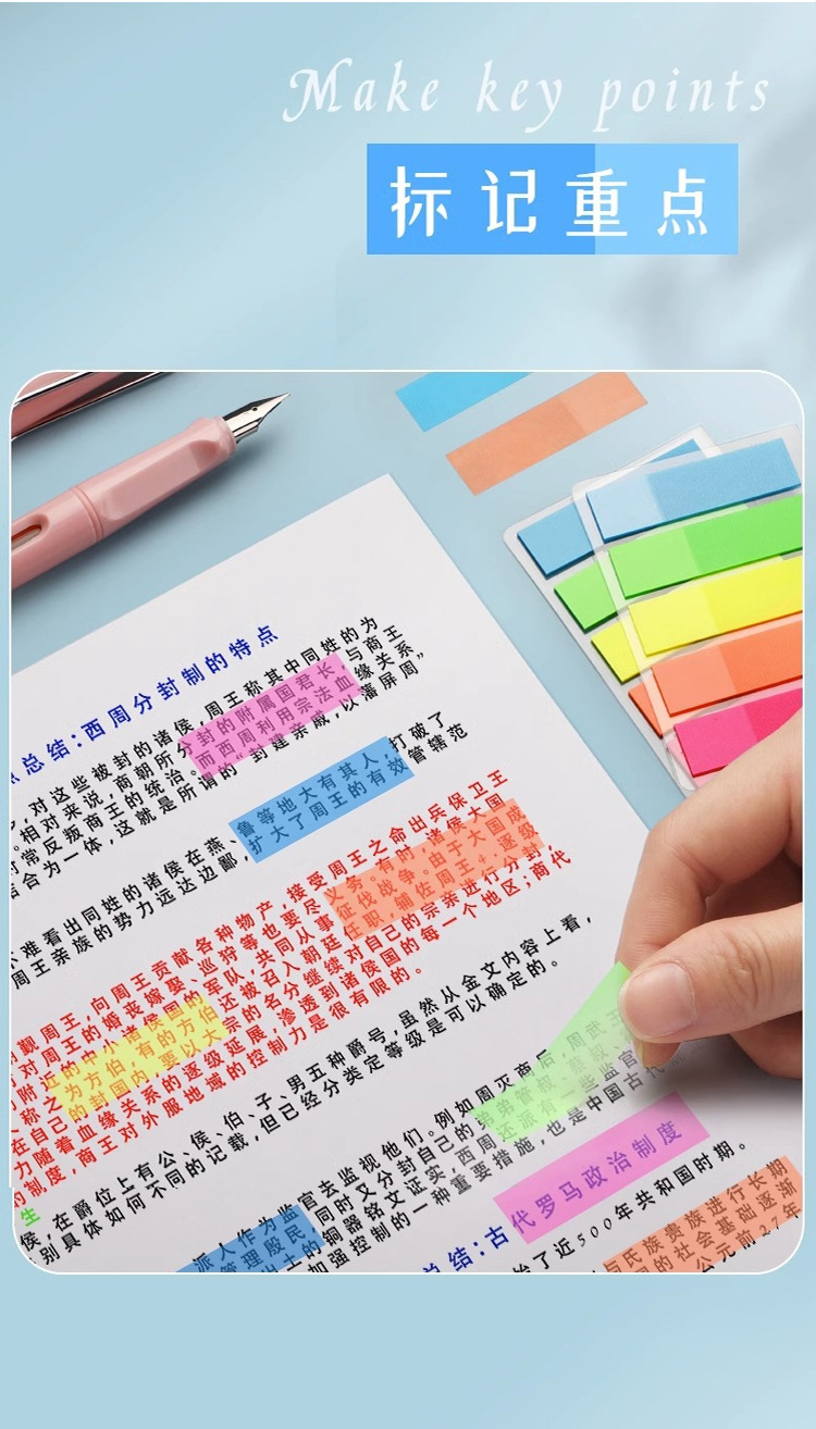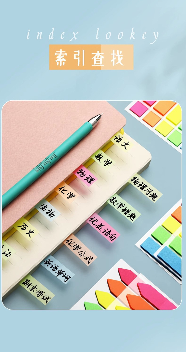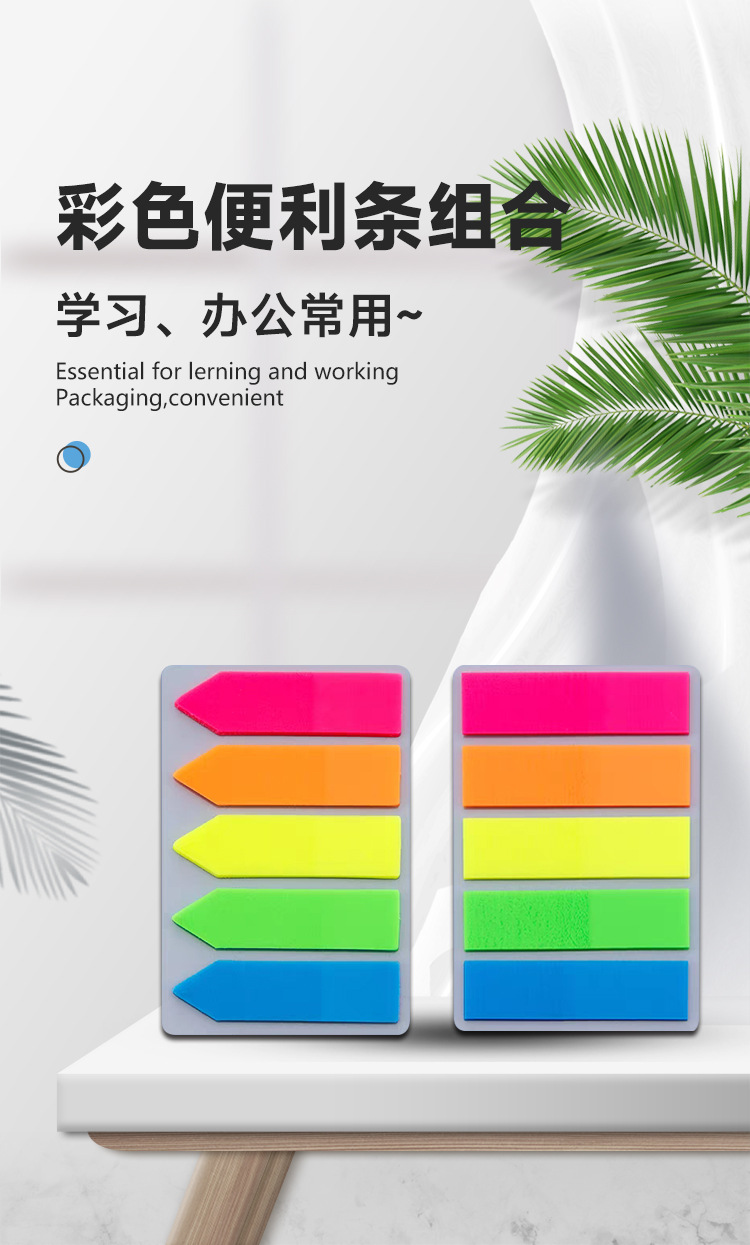 Cross-border customized fluorescent classified PET index notice stickers, 5-color n times sticky notes, sticky notes, strong adhesion