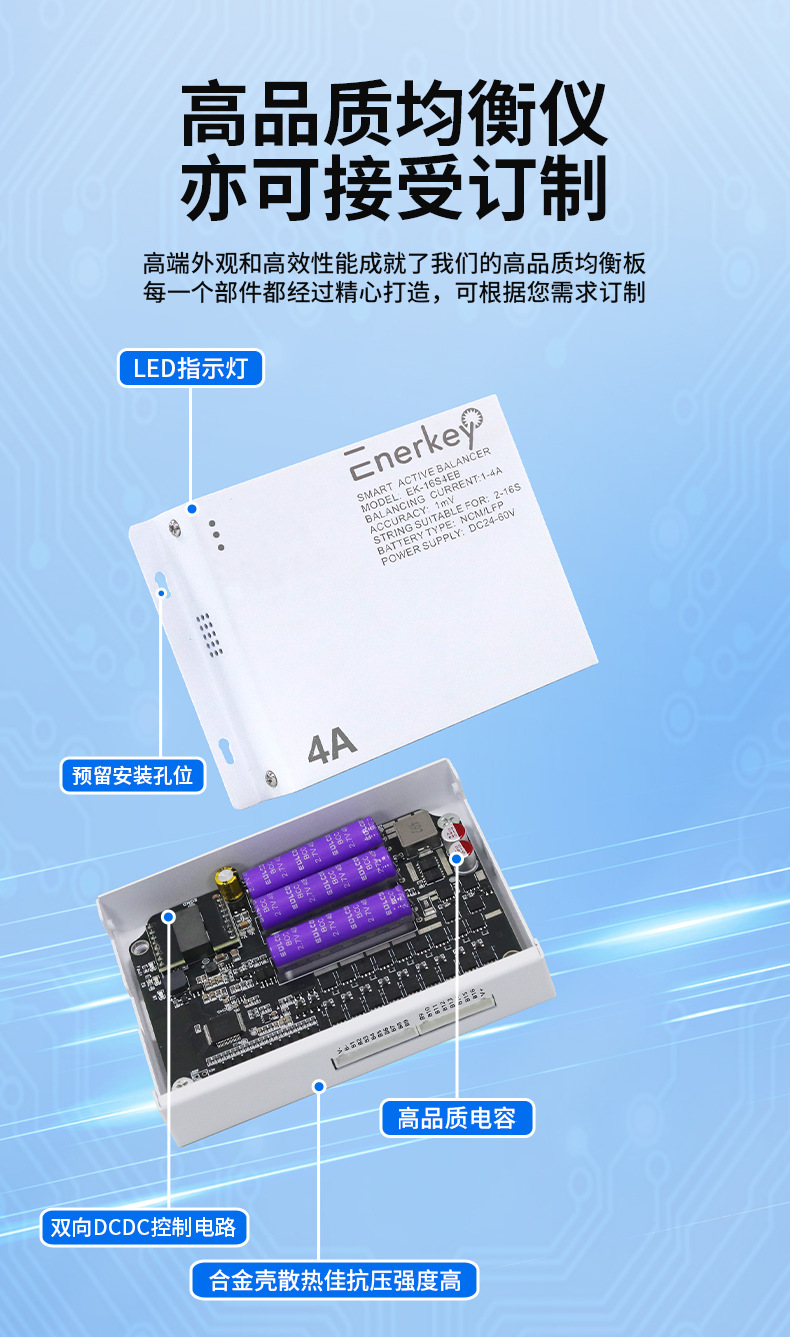 Jinwei 4A lithium Battery Intelligent Active Balancing Instrument: 2 series to 16 series, ternary lithium iron titanate lithium, 1mv accuracy with blue
