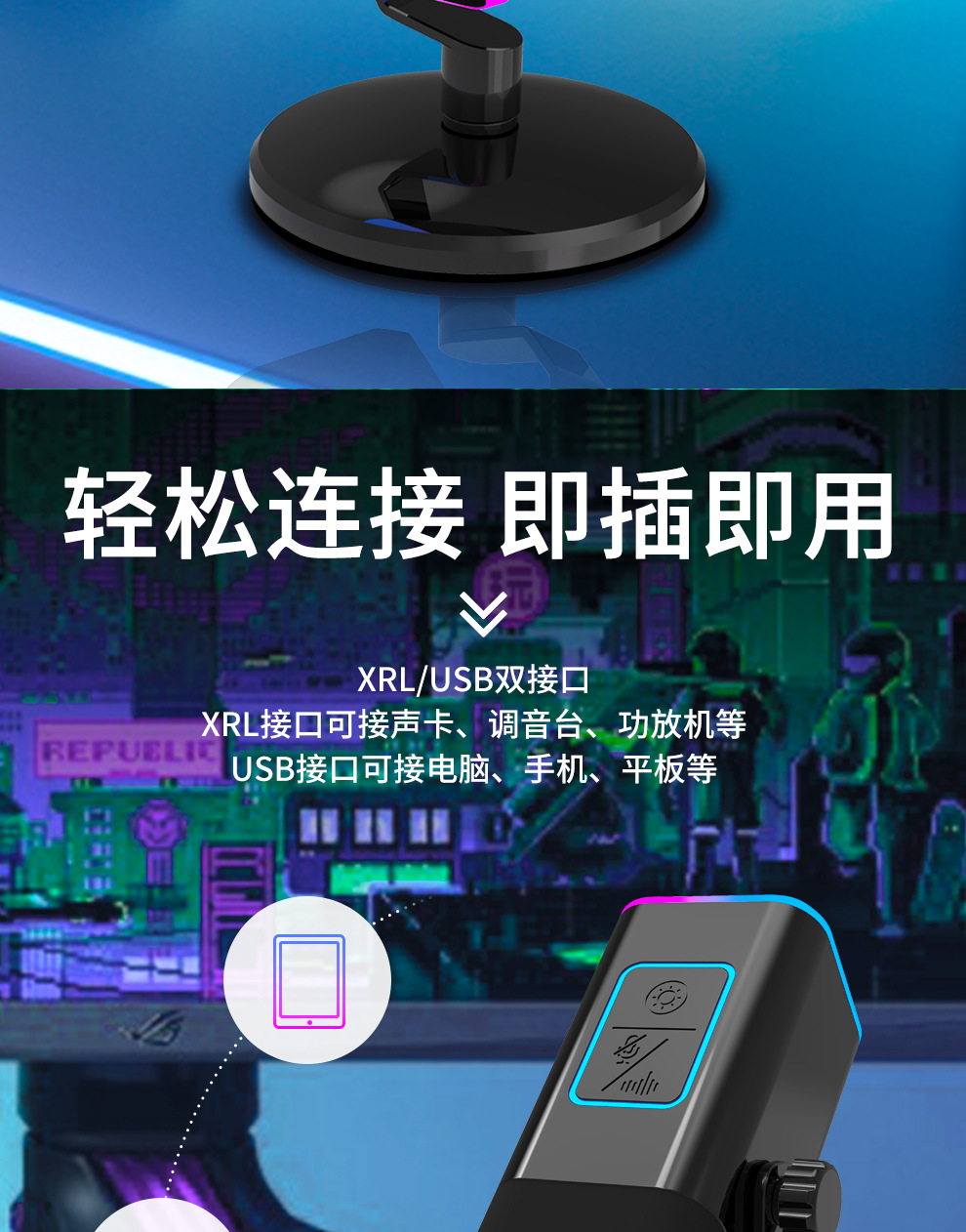 | Color | Microphone + disc stand +USB data cable |