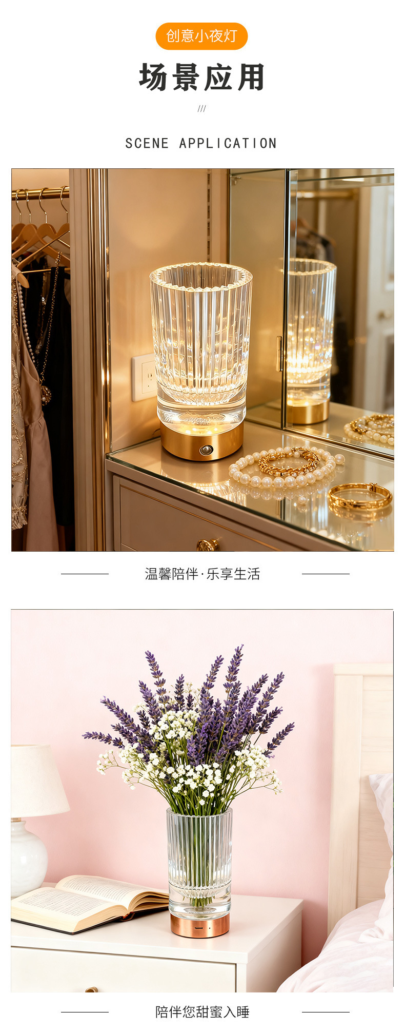 Night light, bedroom sleeping bedside table lamp, romantic couple room atmosphere light, romantic ambience light, high-end mood